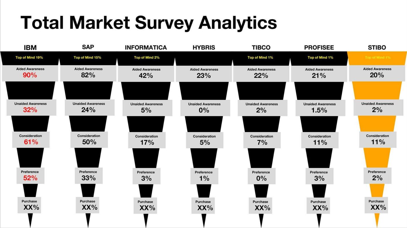 A crucial question for any business is; when comparing yourself to your competitors, where do you sit? This survey allowed Stibo to find out who they needed to worry about as a threat, who to leave alone, who to choose to go head-to-head with in the market. To basically make intelligent marketing decisions. It also facilitates the tailoring of messaging accordingly, in terms of positioning against a certain competitor.