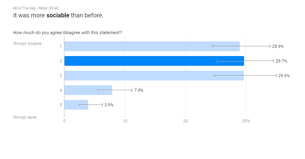 Our preliminary secondary research revealed that as the retail and hospitality sectors emerged out of lockdown 1, legacy experiences synonymous with the sectors had been removed, leaving pronounced, noticeable gaps in atmosphere and experience. Gaps that needed to be filled to compel people to return.