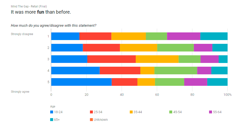 This primary research was conducted continuously across each month via Google Surveys, with a robust, up-to-the-minute sample that had a 95% confidence level with a margin of error of +/- 5%. It was nationally representative of the UK and split evenly across the sectors, allowing for further segmentation and comparison across sectors so trends could be identified across the months. The 5-point Likert scale was used across 9 carefully considered key questions, designed to maximise intel around the consumer’s retail and hospitality experience.