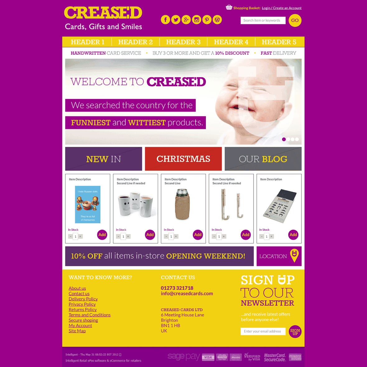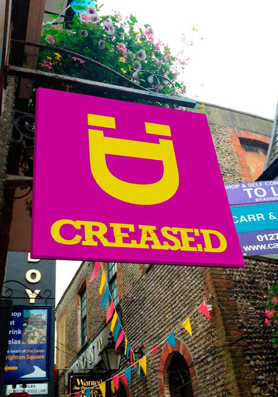 The Creased logo devise was naturally born out of the logo, formed from the ‘ED’ of ‘creased’ into a strong smiling motif suggesting happiness, laughter and associated positive emotions.