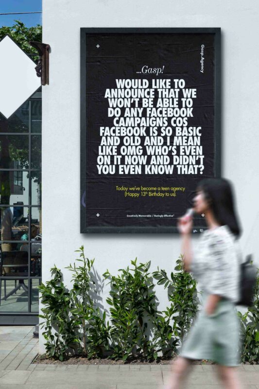 A series of announcements were made across various ad media (organic and paid) including social, OOH/poster sites around Berkshire, announcing the anticipated behaviour changes of a teenage agency.