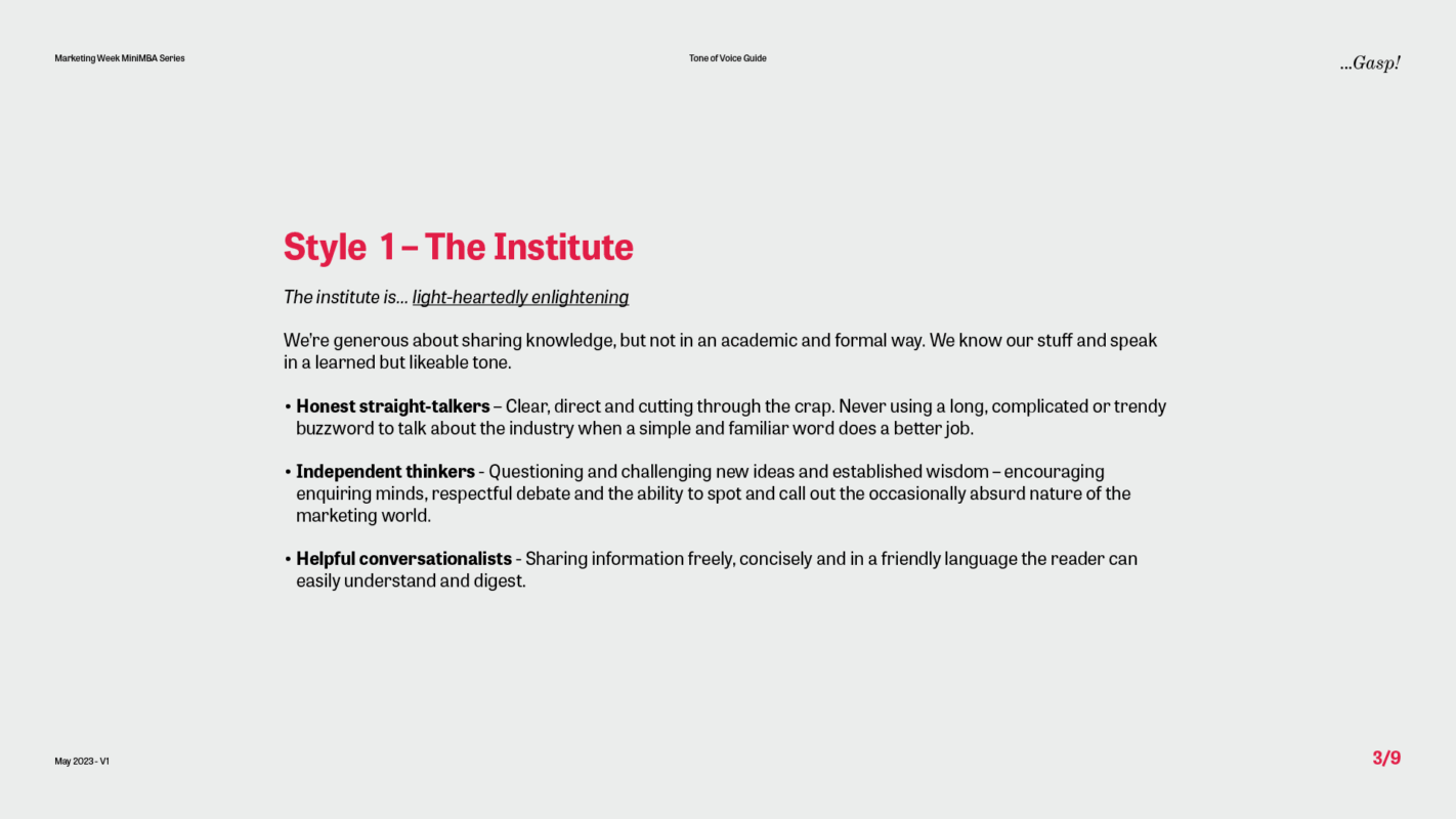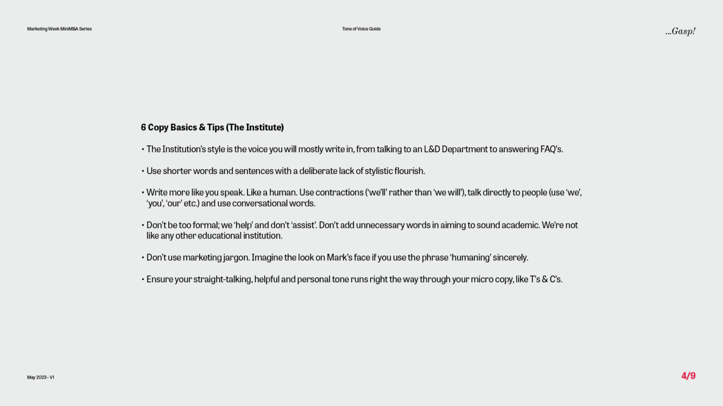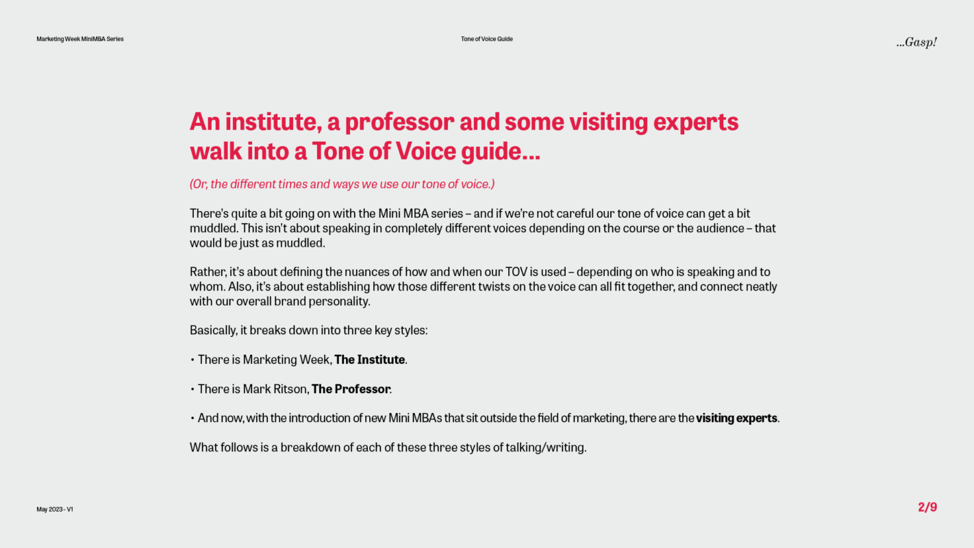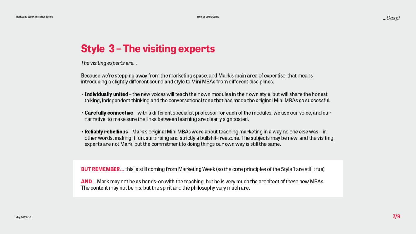 Our first task for the Marketing Week Mini MBA team was to create a tone of voice guide with a difference – one that not only reflected the voice of the programme but also captured the unique personality of the marketing genius behind it all – Professor Mark Ritson.