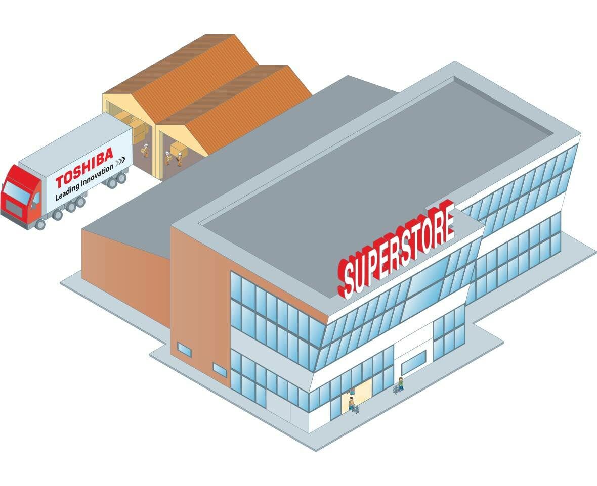 When within a specific sector, hovering over the Toshiba product reveals individual product details and links to further information, including product data sheets and brochures.